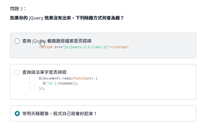 三、選擇器與事件:開始讓你的網頁具有互動性吧!